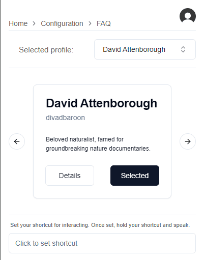 Interaction is conducted using a assigned shortcut. To interact the user holds down the shortcut, which starts speech recognition within the browser. To end a session the user can click the assigned shortcut once.